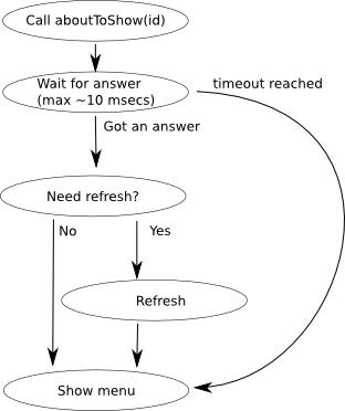 worst a 10 msecs delay (in case the DBus answer to aboutToShow() does