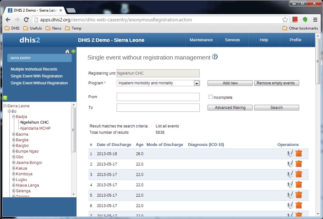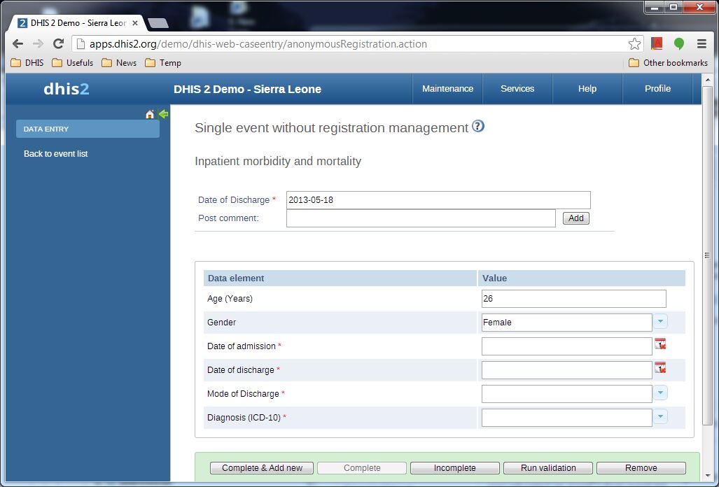 >> filled, the data will be saved as event data in DHIS and the new row will