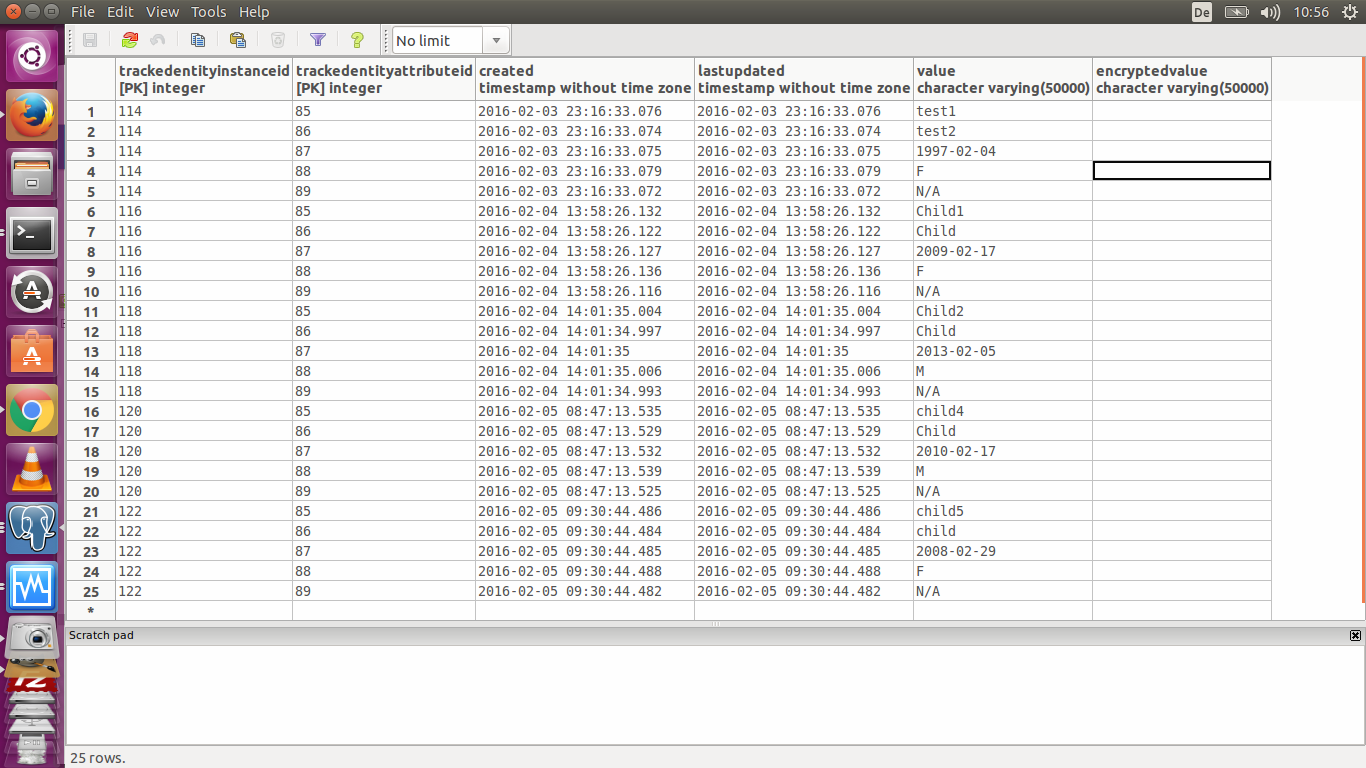 Hello all, I want to use DHIS2 for single case recording. For this I have 2 Installations: one on my local computer(Virtual Box) using DHIS 2.21 and the second installation is on a remote server with 2.22. For both I am using Ubuntu 14.04, Postgres 9.3, Java Oracle 8 and Tomcat. In 2.21, when I create a new "Program" and assign it to my user and to an organisation, I am able to create and see entities for this program in the tracker capture. In 2.22, for the same procedure, I am not able to see the list of entities I have created. And I checked in my database, the entities have be saved (see Attachment). But I can not see any related error in the log files. My question is, could someone tell me what am I doing wrong, or what I should do next? Thanks, Barakissa