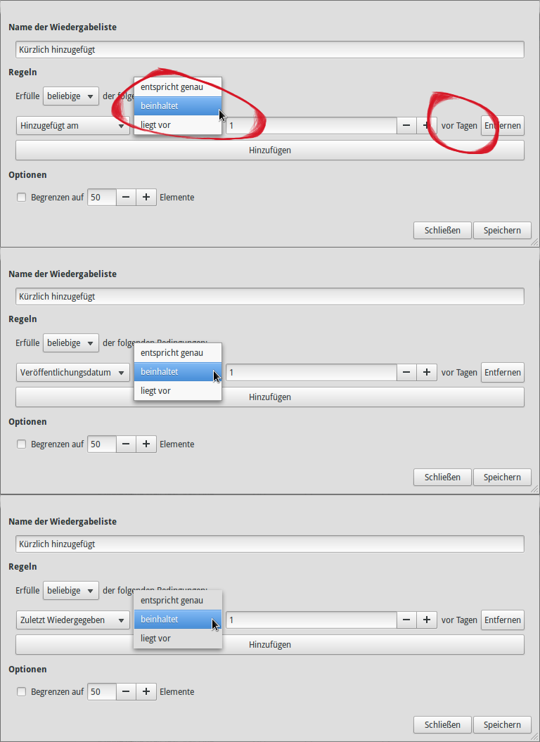 Leider funktionieren die intelligenten Wiedergabelisten bei mir noch