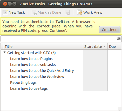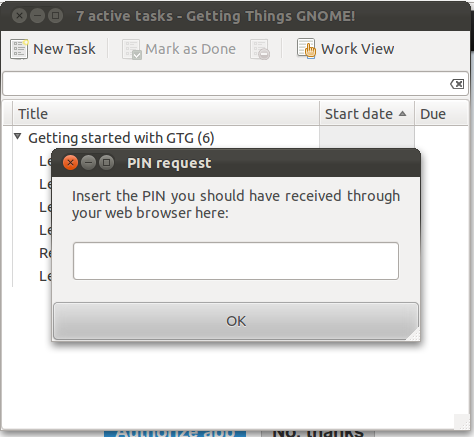 ***************************A new concept in the latest GTG is backends. You can synchronize your tasks with services like Google Tasks, Remember the Milk. Those services requires authentication in the browser (most of them). The current workflow is: