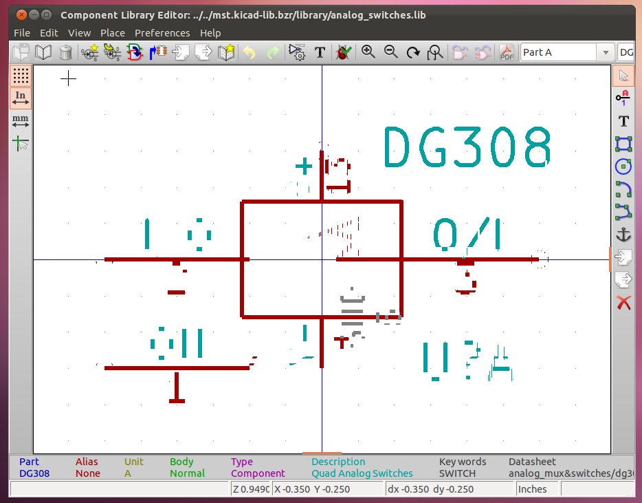 Hello, I am experiencing some displaying problems (on today kicad built) when I load any standard component in the component library editor, see attachment. I am on a 32 bit ubuntu 11 with Gnome. Does anybody have a similar experience? Any solution? Regards Fabrizio