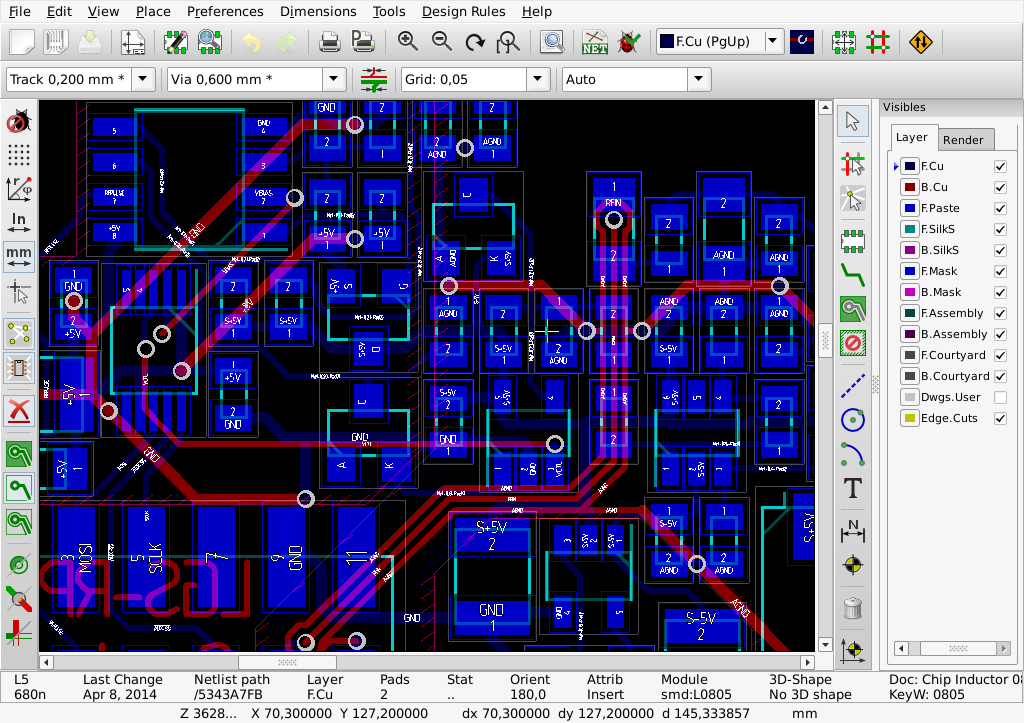On Mon, Jun 02, 2014 at 09:57:47AM +0200, Paweł Dras wrote: > IMHO some rules according to silk should be specified in convention. For > example line width should be the same (perhaps with some exceptions) in IPC says that, depending on the environment, line should be 4/5/6 mils or 0.1/0.12/0.15 mm (yes, it depends on the 'main' unit). So for a nominal metric design it would be 0.12mm. However our fabricators says that silk is 0.2mm minimum anyway, since we usually do 'true' silk screening (not inkjet). YMMV, depending on the process available. > whole library, because then the PCB looks clean and more "professional". > With pads over the silk is the same situation, in many cases after silk > erasure by solder mask it don't looks good on final product. By experience after erasure it sucks a lot! SOICs with silk erasures seems jumbles of dots. > Another problem is to wide placed silk. > For example in attachment is how looks now silk for 1206 resistor and my > proposal for new one. IMHO the silk should be tight to the pad, because > then when we place few such resistors close to each other we don't get a > mess with silk. The new one is more like in principle to the IPC one (see attachment). The main issue is that silk for chip components eats valuable courtyard space, especially when you need a wider pad for probing (this is not taken in account by IPC!). In fact on the 0603 pads we use you can quite easily mount a 0805... As usual it depends on your target density. See other attachment to see how do i do these usually (even the SOT23s are oversized for mechanical resistance). However I packed things way more than that, this is a test board designed for hand assembly :P > I have a question, can be ref and value placed as in my attachment or > should be above and below resistor? Value usually is not shown on silk; it's already difficult enough to place the refdes! By convention refdes is on the placement point for fabrication drawing and... wherever it fits on the silk. If there is place, obviously... sometimes you see block of components (usually small passives) bracketed on the silk with the list of the references, but that is manual tune-up of the layout of course. -- Lorenzo Marcantonio Logos Srl