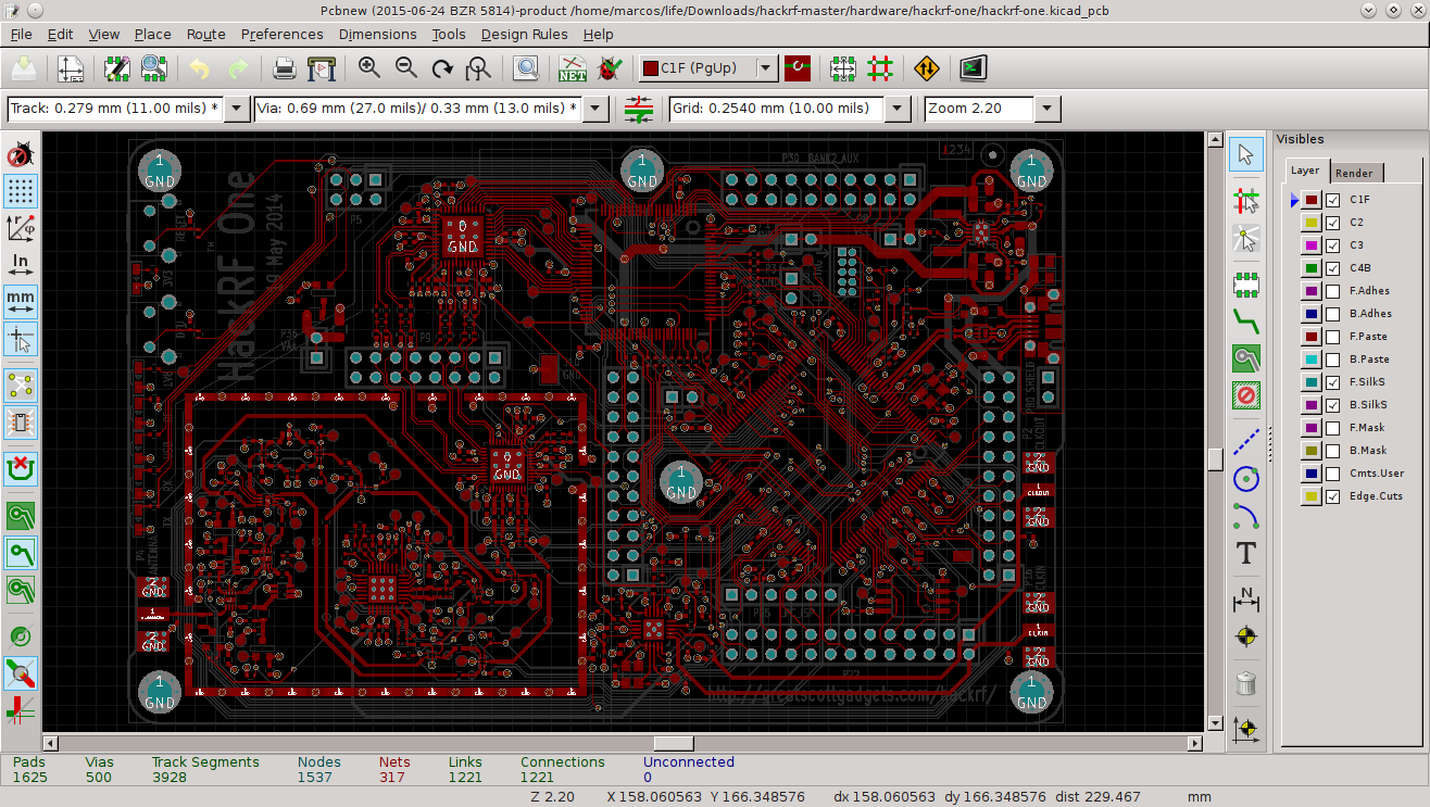Sure, see attached. Beware, the schematic is not that pretty. Marcos On Wed, Jun 24, 2015 at 3:52 PM, Nick Østergaard <oe.nick@xxxxxxxxx> wrote: > I can update it in a moment, but I actually like the current setup, where > you can see the same board in those different apps. Can you create those > with the hack RF also? > Den 24/06/2015 20.42 skrev "Marcos Chaparro" <nitrousnrg@xxxxxxxxx>: > >> Hi, >> see attached some screenshots of 3D Viewer showing the HackRF board, it >> could replace this one in kicad-pcb.org >> >> http://www.kicad-pcb.org/display/KICAD/KiCad+EDA+Software+Suite?preview=/589828/1376287/kicad_3dviewer.png >> >> Who should I ask to upload it? >> >> The other screenshots could be updated too, they look ancient. >> >> Regards >> >> >> Marcos >> >> On Sun, Jun 21, 2015 at 3:05 PM, Nick Østergaard <oe.nick@xxxxxxxxx> >> wrote: >> >>> For whoever who want to compose such a message, should start out with >>> having a look at >>> http://www.kicad-pcb.org/display/DEV/KiCad+Development >>> >>> I have collected some of the new nice additions, likely not all. >>> >>> 2015-06-21 18:12 GMT+02:00 Wayne Stambaugh <stambaughw@xxxxxxxxx>: >>> > I would also be nice if we had an announcement about the new stable >>> > release with a list of new features such as 64 layers, openGL >>> rendering, >>> > P&S routing, etc. >>> > >>> > On 6/20/2015 1:46 PM, Marcos Chaparro wrote: >>> >> Yes, it would be nice to have the website updated. >>> >> Kicad could have a lot of media coverage given the vast improvements >>> >> over the last release and we will need (besides bugfixing) some >>> >> appealing screenshots and videos. >>> >> >>> >> If I can I'll prepare screenshots from hackrf, ubertooth, etc for you >>> >> guys to review. >>> >> >>> >> Best regards >>> >> >>> >> On Jun 20, 2015 8:56 AM, "Wayne Stambaugh" <stambaughw@xxxxxxxxx >>> >> <mailto:stambaughw@xxxxxxxxx>> wrote: >>> >> >>> >> Can we possibly get this done before the stable release which >>> hopefully >>> >> will be some time near the end of July? It would be nice to roll >>> this >>> >> out around the same time. >>> >> >>> >> Thanks, >>> >> >>> >> Wayne >>> >> >>> >> On 6/20/2015 2:51 AM, Nick Østergaard wrote: >>> >> > 2015-06-20 2:53 GMT+02:00 Cirilo Bernardo >>> >> <cirilo.bernardo@xxxxxxxxx <mailto:cirilo.bernardo@xxxxxxxxx>>: >>> >> >> Hello everybody, >>> >> >> >>> >> >> Marcos Chaparro has added a screenshot to the wikipedia entry >>> on >>> >> KiCad: >>> >> >> >>> https://en.wikipedia.org/wiki/KiCad#/media/File:KiCad_3D_with_IDF.png >>> >> >> >>> >> >> The screenshot shows the new 3D Viewer rendering of the video >>> >> demo board >>> >> >> along with a VRML rendering of an exported IDF file. Perhaps >>> this >>> >> can be >>> >> >> put into the official web page at some point? >>> >> >> >>> >> >> As for the web page, it would be nice to have a new one >>> launched >>> >> with the >>> >> >> stable release. Shall we put a call out on the various lists >>> for >>> >> people who >>> >> >> may wish to volunteer to work on ideas? >>> >> > >>> >> > Yes probably. I can try to have a look tomorrow, i no one beats >>> me to >>> >> > it. In the future I am more inclined to make some gallery or >>> something >>> >> > and not nessesarely have only one. But I would also like to get >>> a new >>> >> > site based on some static site generator, with the restriction >>> that is >>> >> > should read asciidoc, easily, such that we can embed the docs >>> in a >>> >> > nice way. Or at least that is my idea. >>> >> > >>> >> >> I have no special objection to the coldfire demo board which >>> has >>> >> featured on >>> >> >> the page for so long, but the "2011 Nov" date in the screenshot >>> >> suggests >>> >> >> that there has been no development for a long time. If nothing >>> >> else we >>> >> >> should repeat the screenshot with a current release, but my >>> preferred >>> >> >> action would be to feature an Open Hardware design (with the >>> >> permission >>> >> >> of the creators of course). With the various changes to 3D file >>> >> format >>> >> >> support especially in the past year I should be able to use >>> >> SolidWorks >>> >> >> to help create any necessary models to make the featured board >>> look >>> >> >> good. >>> >> > >>> >> > There are many cool looking open hardware designs made with >>> KiCad >>> >> out there. >>> >> > >>> >> >> Many of the screenshots on the current page have also been >>> outdated >>> >> >> for some time; for example the 3D views are from an era where >>> the >>> >> board >>> >> >> and many other features have not been rendered. >>> >> > >>> >> > True. >>> >> > >>> >> >> - Cirilo >>> >> >> >>> >> >> >>> >> >> _______________________________________________ >>> >> >> Mailing list: https://launchpad.net/~kicad-developers >>> >> >> Post to : kicad-developers@xxxxxxxxxxxxxxxxxxx >>> >> <mailto:kicad-developers@xxxxxxxxxxxxxxxxxxx> >>> >> >> Unsubscribe : https://launchpad.net/~kicad-developers >>> >> >> More help : https://help.launchpad.net/ListHelp >>> >> >> >>> >> > >>> >> > _______________________________________________ >>> >> > Mailing list: https://launchpad.net/~kicad-developers >>> >> > Post to : kicad-developers@xxxxxxxxxxxxxxxxxxx >>> >> <mailto:kicad-developers@xxxxxxxxxxxxxxxxxxx> >>> >> > Unsubscribe : https://launchpad.net/~kicad-developers >>> >> > More help : https://help.launchpad.net/ListHelp >>> >> > >>> >> >>> >> >>> >> _______________________________________________ >>> >> Mailing list: https://launchpad.net/~kicad-developers >>> >> Post to : kicad-developers@xxxxxxxxxxxxxxxxxxx >>> >> <mailto:kicad-developers@xxxxxxxxxxxxxxxxxxx> >>> >> Unsubscribe : https://launchpad.net/~kicad-developers >>> >> More help : https://help.launchpad.net/ListHelp >>> >> >>> > >>> > >>> > _______________________________________________ >>> > Mailing list: https://launchpad.net/~kicad-developers >>> > Post to : kicad-developers@xxxxxxxxxxxxxxxxxxx >>> > Unsubscribe : https://launchpad.net/~kicad-developers >