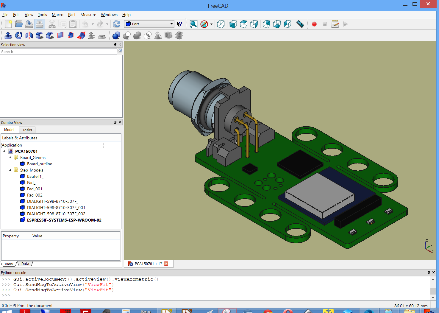 Hi Ed, (sorry the attachment was missing) now I understand the multi-part problem...the script, to run smoothly, assumes that all the models refer to a single solid object. So you need to make a union of the STEP part correspondent to the wrl in kicad (in freeCAD is 'fusion') and then export the fused part