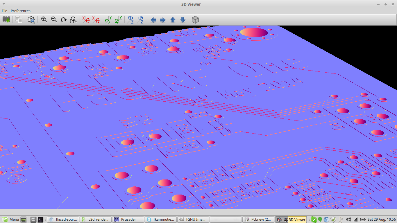 Hello all, Just to show you some progress on an experimental 3D-Viewer raytracing that I have been working for about half year. The board is really ray-traced with math shapes, i.e: using not just triangles but also using the proper shapes for the each propose (cylinders, rings, discs, planes, round segments, etc.) It features CSG (constructive solid geometry) so you can see the mathematically perfect extraction of the holes in the layers. The attached images show the color of the normals (XYZ -> RGB) showing the nature quality precision of the render. Raytracing is infamous to be a slow algorithm for rendering, however, that is not so true (anymore). For very complex scenes, raytracing will handle the render better than a typical rasterization engine. Another specific thing in relation with KiCad (PCBs) is that Raytracing don't need a special and complex construction as it is need by a triangle engine (all items must be converted to triangles and then layers are subtracted with the holes..etc) so in the end I expect that the "time from the first image" (ie: when you open a new instance of 3d-viewer and see the first image) will be faster to compute than the actual method. (At this moment for some boards, Video, HackRF..., with all features enabled , the time of loading and display it is faster than the current implementation. And there is still no optimizations on loading and multi processor) The version I am working in is here if you want take a look: https://code.launchpad.net/~mrluzeiro/kicad/kicad_new3d-viewer but nothing useful at moment to see or test. (Note: If you wondering, the version is compatible and updated with all latest updates on kicad trunk) Anyone that want to contribute something or participate is welcomed! If this can lead to something, we can get the badge of "The first EDA to implement an internal raytracing render" :) I believe that I archived about 1/3 of my goals, so don't expect any big news in the next half year. Mario Luzeiro