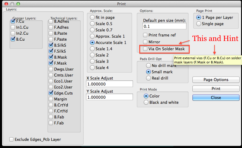 features inside the "File->Print" dialog of pcbnew (eg., small drill).