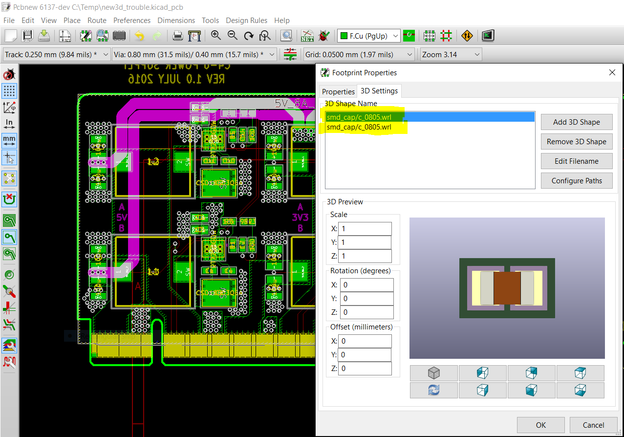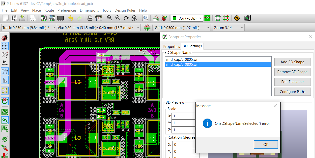 What I noticed is that on editing 3D footprint parameters, 3D settings