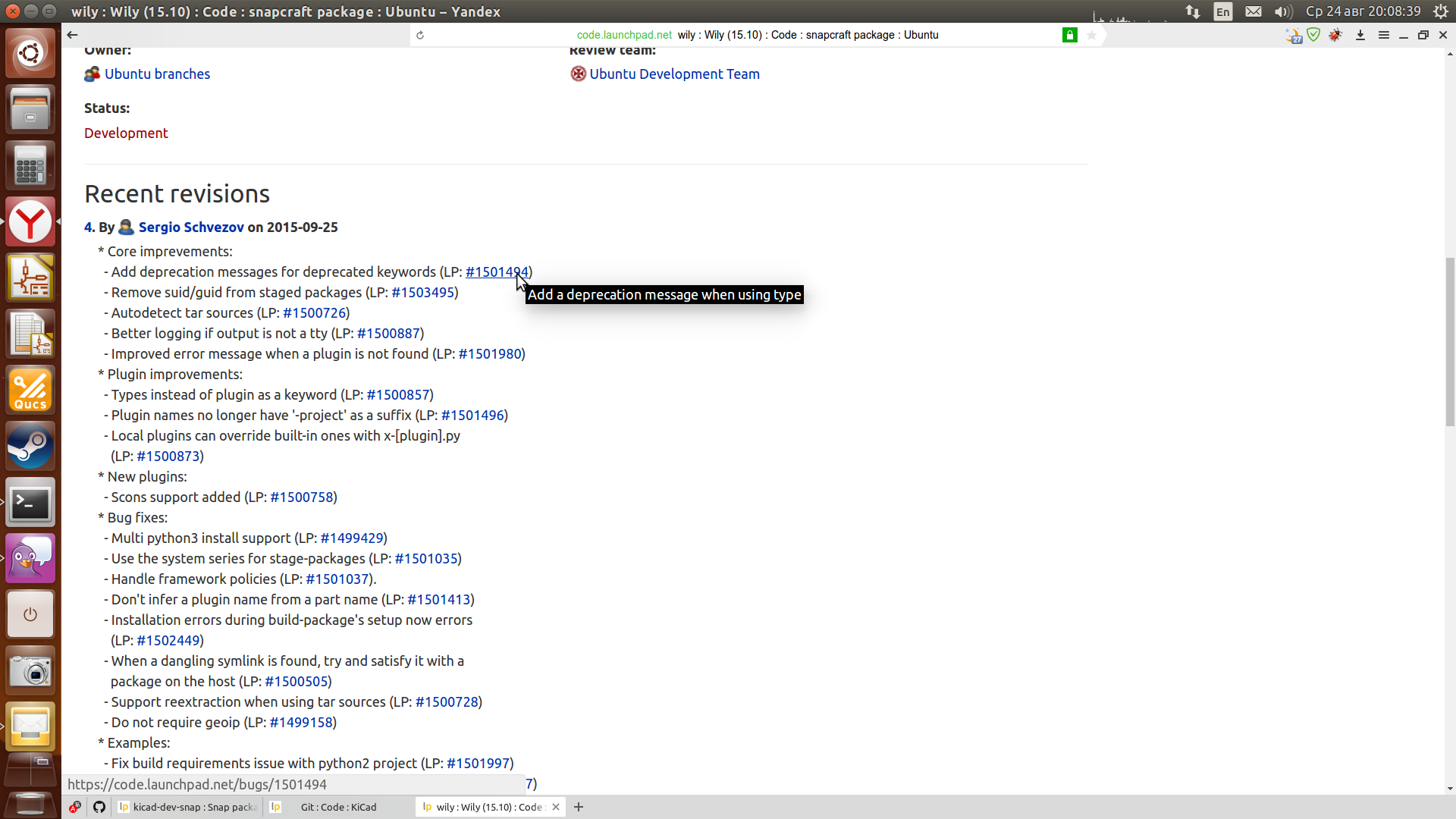 Launchpad supports link messages to bugs like this: LP: #id P.S. and in the terminal in Ubuntu this msg is the link too.В Пятница, 12 авг. 2016 в 10:34 , Wayne Stambaugh <stambaughw@xxxxxxxxx> написал: