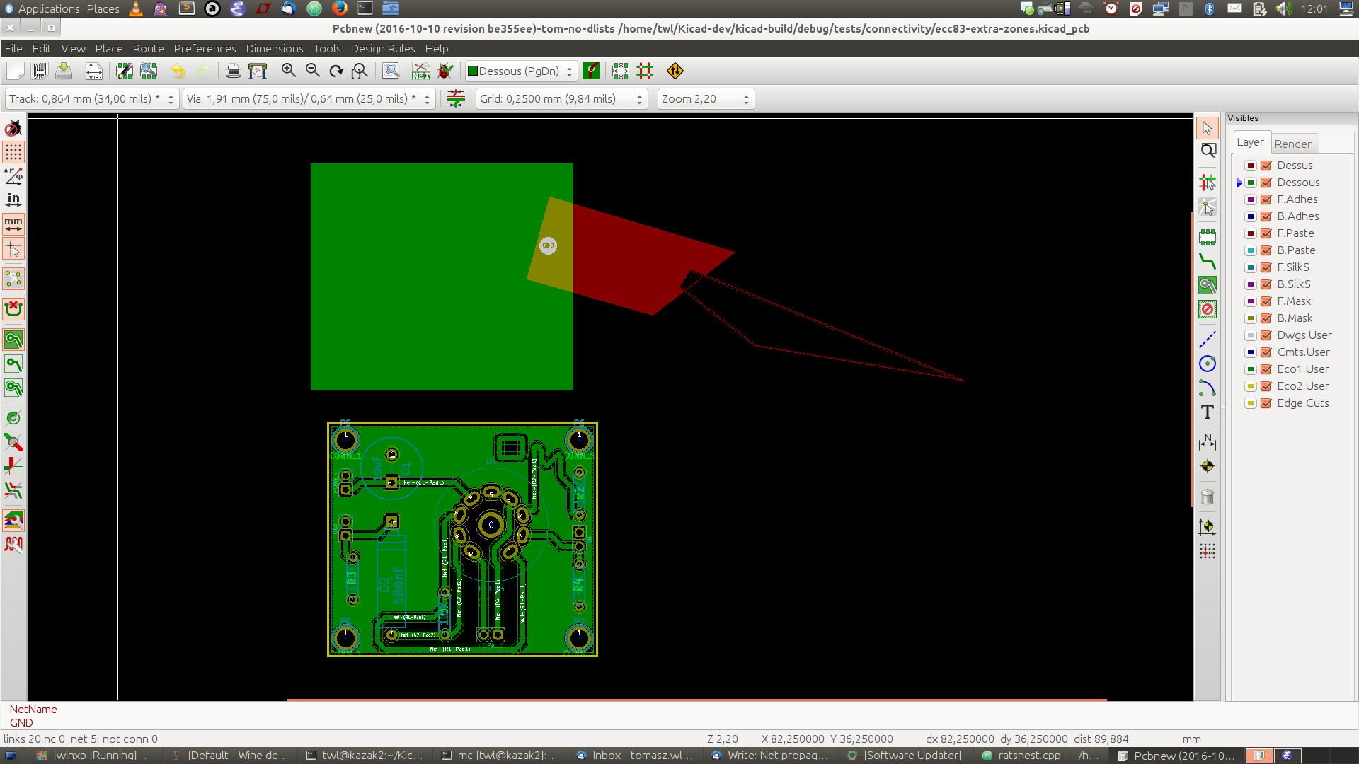 - Doesn't handle overlapping zones. The rightmost zone has the net GND,