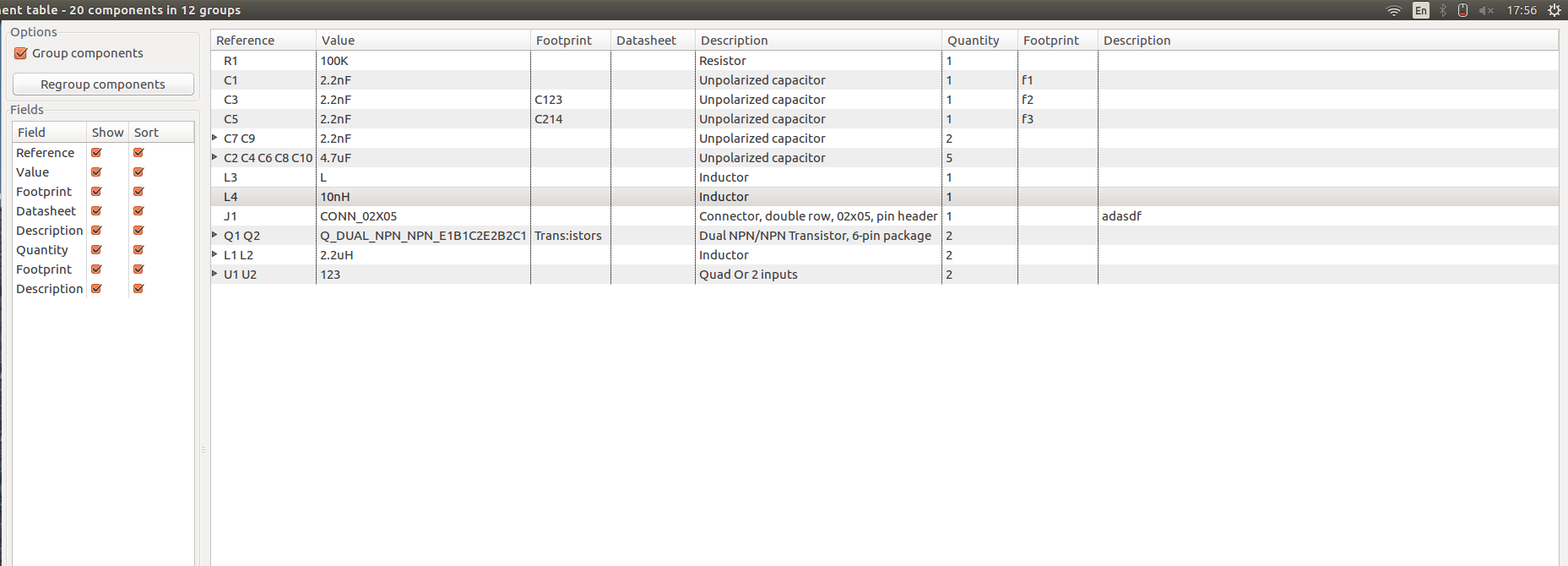 >>>> The first "Description" column is filled with the symbol descriptions