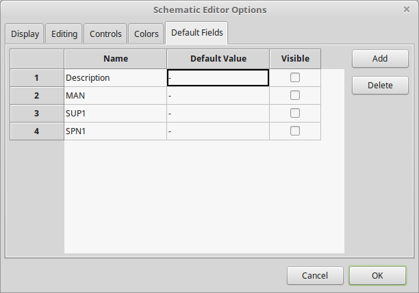 > and a default value in the schematic editor options (Default fields).