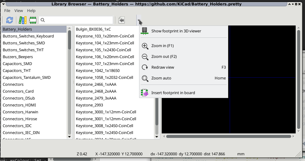 >> > In eeschema when you launch the component viewer, it (on first run) maps