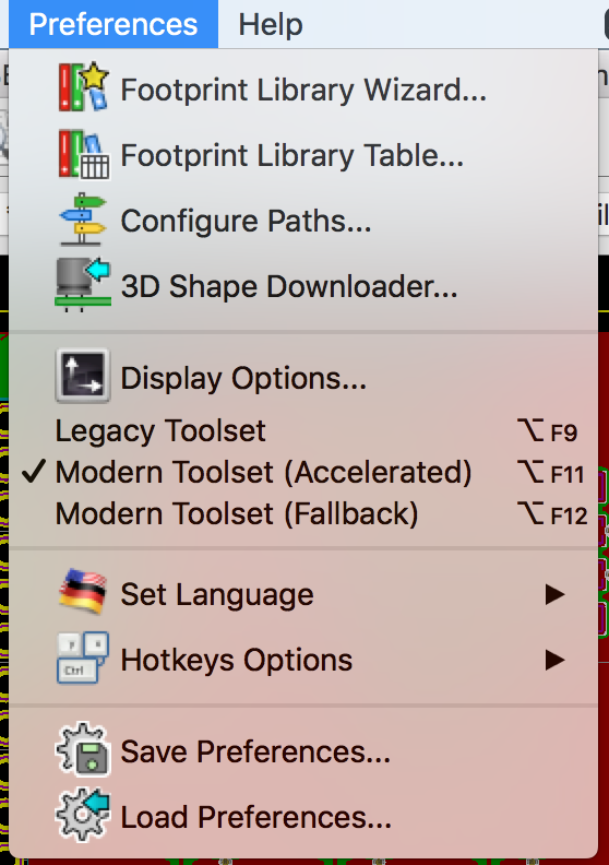 I'm doing them now. Can I suggest we use "Modern Toolset (Accelerated)" instead of "(Accelerated Graphics)"? Just for the aesthetics. Cheers, Michael On 19 February 2018 at 20:44, Jeff Young <jeff@xxxxxxxxx> wrote: > No worries, Michael. I can even do the canvas selection changes if you want me to. > > Cheers, > Jeff. > > >> On 19 Feb 2018, at 18:21, Michael Kavanagh <michael@xxxxxxxxxxxxxxxxxx> wrote: >> >> On 19 February 2018 at 12:26, Jeff Young <jeff@xxxxxxxxx> wrote: >>> I’m glad we got the new menu structure in, because some of the issue will only be uncovered with a bit of use. >>> >>> I’ve found the first one, but I’ve got a meta-question first: >>> >>> Michael, do you want to do the modifications for any issues that we find? Or do you have limited bandwidth? >> >> I'd be happy to do them, but I am currently in my final year of >> university and writing my thesis.. so that has to take priority. I >> just wanted to help fix up the UI/UX a bit before the v5 release, >> mainly focusing on the menu bars and maybe reorganising the top >> horizontal toolbars if there was time. >> >>> On to the issue: >>> >>> The canvas options got put under a Display Settings sub-menu. We were trying to re-inforce the notion that they’re different toolsets, not just display settings, so they need to go back up to the top-level Preferences menu. >> >> I can fix this after the Footprint Editor tweaks are agreed. >> >>> In that vein "Legacy Graphics" should be "Legacy Toolset". >>> And "Modern Toolset (Accelerated Graphics)" would be much more descriptive (admittedly at the expense of some verbosity). >>> >>> I’m torn between whether they should share the menu-section with "Display Options…" or not. I think I’d lean towards yes as they are highly-related…. >> >> I think they should be in the same section, under Display Options... >> >>> _______________________________________________ >>> Mailing list: https://launchpad.net/~kicad-developers >>> Post to : kicad-developers@xxxxxxxxxxxxxxxxxxx >>> Unsubscribe : https://launchpad.net/~kicad-developers >>> More help : https://help.launchpad.net/ListHelp >> >> _______________________________________________ >> Mailing list: https://launchpad.net/~kicad-developers >> Post to : kicad-developers@xxxxxxxxxxxxxxxxxxx >> Unsubscribe : https://launchpad.net/~kicad-developers >> More help : https://help.launchpad.net/ListHelp >