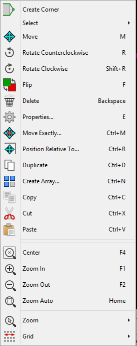 pcbnew: Right Click Context Menu