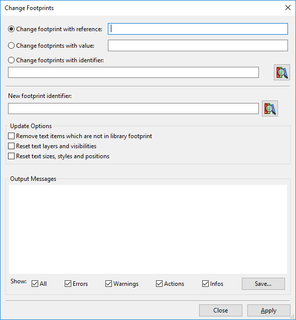 Hey Jeff, Attached are the updated screen shots. Everything look good except now the text in the dialog button sizers is too small (at least for my old eyes). On windows, the stock control text seems to be the best size. I also noticed in the text in the read only grid in track and via properties dialog also is too big. I think I saw another dialog where this was the case as well. Cheers, Wayne On 7/17/2018 5:19 PM, Jeff Young wrote: > Hi Wayne, > > I merged a bunch of spacing changes (only in master for now). > > When you have a chance could you screen-shot those same 4 dialogs again? > > Thanks, > Jeff. > > >> On 17 Jul 2018, at 20:48, Wayne Stambaugh <stambaughw@xxxxxxxxx> wrote: >> >> Hey Jeff, >> >> The text size is better but there is now dead space above the button >> sizer. It's different but I'm not sure that is better. For CvPcb, our >> standard message panel might be a good option so that it separates the >> message information from the button sizer space. I'm not sure what the >> answer is for a typical dialog. >> >> Wayne >> >> On 7/17/2018 3:34 PM, Jeff Young wrote: >>> Hi Wayne, >>> >>> Can you send a screenshot of CvPCB with status text at the bottom? I used a different strategy for setting the text size there which hopefully works better on Windows. >>> >>> Thanks, >>> Jeff. >>> >>> >>>> On 17 Jul 2018, at 19:32, Wayne Stambaugh <stambaughw@xxxxxxxxx> wrote: >>>> >>>> See attached image for windows. >>>> >>>> There is something very odd going on with some of the dialogs where it >>>> looks like a control is constantly being refreshed as though it is in >>>> some kind of event loop. Did you make any changes to DIALOG_SHIM that >>>> could cause this? It is the most noticeable in the schematic plot >>>> dialog page size selection drop down control. >>>> >>>> All dialogs that have text in the dialog button sizer look terrible on >>>> windows. The text is way too big and messes up the button sizer. I try >>>> to avoid using anything but the standard text size in controls. They >>>> never seem to be consistent between platforms. I would prefer if you >>>> find a better place for this text. Maybe a static text control at the >>>> top of dialog or possible the title bar. See fp-props-dialog.png. >>>> >>>> There are quite a few dialogs that have incorrect padding in the >>>> standard button sizer. I'm sure I fixed most (all) of these before we >>>> branched stable 5. See change-fp-dialog.png. >>>> >>>> >>>> On 7/17/2018 2:04 PM, Jeff Young wrote: >>>>> As long as they’re coming in in onesies and twosies email is fine. If >>>>> they start coming in thicker and faster bug reports are probably better. >>>>> >>>>> Can you send me a screenshot of the Edit Spice Model… button? I assume >>>>> it looks different than on OSX: >>>>> >>>>> >>>>> Cheers, >>>>> Jeff. >>>>> >>>>>> On 17 Jul 2018, at 18:52, Wayne Stambaugh <stambaughw@xxxxxxxxx >>>>>> <mailto:stambaughw@xxxxxxxxx>> wrote: >>>>>> >>>>>> On 7/17/2018 1:08 PM, jp charras wrote: >>>>>>> Le 17/07/2018 à 18:22, Jeff Young a écrit : >>>>>>>> Hi JP, >>>>>>>> >>>>>>>> I merged another version of the Netclass Membership editor. Let me >>>>>>>> know what you think. >>>>>>>> >>>>>>>> Cheers, >>>>>>>> Jeff. >>>>>>>> >>>>>>> >>>>>>> It is must better now. >>>>>>> Thanks. >>>>>>> >>>>>> >>>>>> Do you want bugs reported against these changes or are you just looking >>>>>> for general feedback? I found a size and alignment issue with the "Edit >>>>>> Spice Model.." button in the symbol editor dialog. I can file a bug >>>>>> report against it if you prefer. >>>>>> >>>>>> Wayne >>>>>> >>>>>> _______________________________________________ >>>>>> Mailing list: https://launchpad.net/~kicad-developers >>>>>> <https://launchpad.net/%7Ekicad-developers> >>>>>> Post to : kicad-developers@xxxxxxxxxxxxxxxxxxx >>>>>> <mailto:kicad-developers@xxxxxxxxxxxxxxxxxxx> >>>>>> Unsubscribe : https://launchpad.net/~kicad-developers >>>>>> <https://launchpad.net/%7Ekicad-developers> >>>>>> More help : https://help.launchpad.net/ListHelp >>>>> >>>> <symbol-prop-dialog-win10.png><change-fp-dialog.png><fp-props-dialog.png> >>> >> <cvpcb-win10.png> >