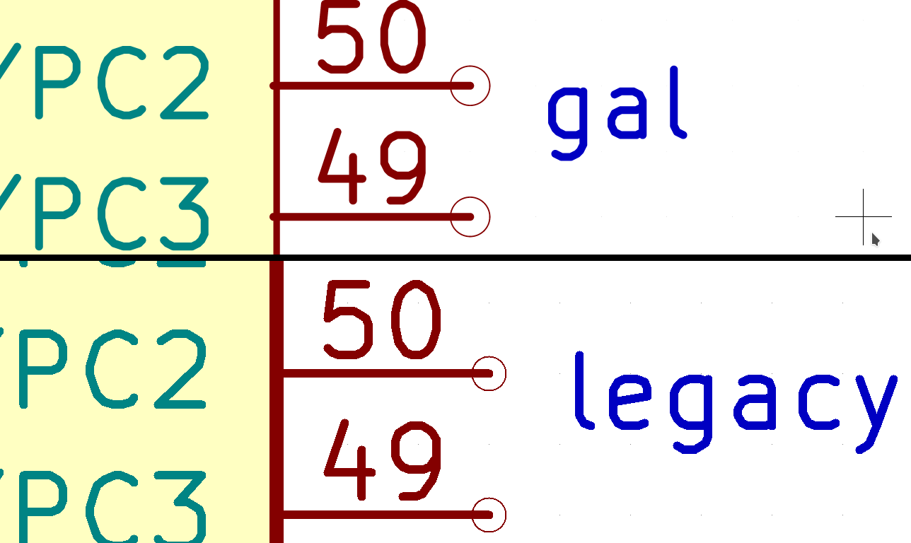 Also, I need to set the graphics acceleration to "Supersampling (4x)" to get an acceptable display quality, which unfortunately causes Eeschema to be rather slow. But that may just be an issue with my old computer (Thinkpad T420s).