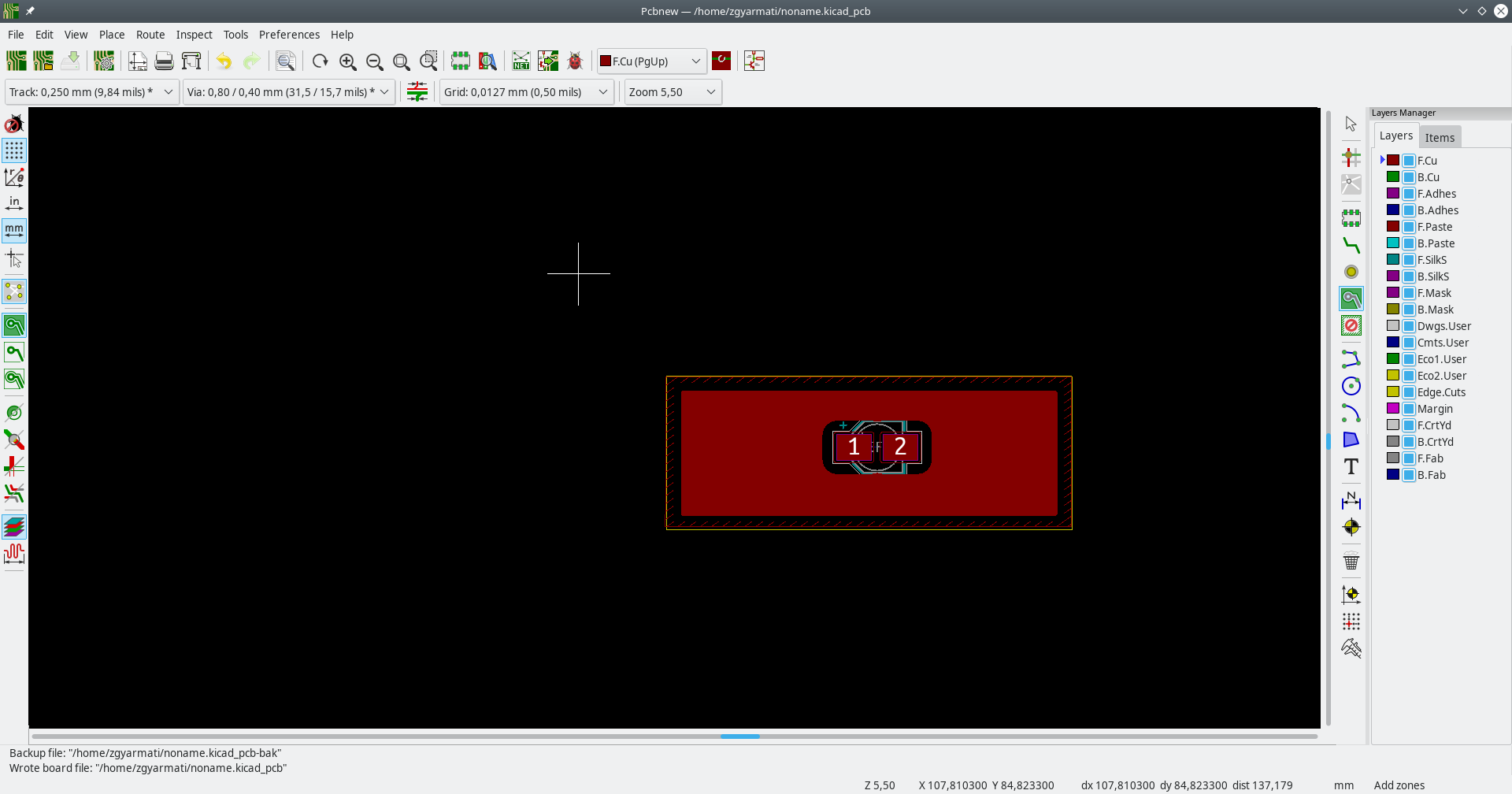 Dear Maciej&All, i checked out and compiled your branch, it builds properly (Ubuntu 18.04, x86_64), but when i tested the print functionality, i noted that the marker for the zone fill perimeter is visible on the printed layout, see attached pdf (printed into file via the normal print dialog) and a screenshot of the fairly simple board. Regards Zoltan Gyarmati https://zgyarmati.de