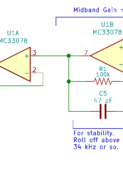 In the attached screenshot, compare the line width at pin 2 and pin 3 of the op-amp.