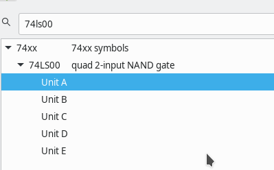 Hi, so here one digit patch. Problem Symptom: in the schematic symbol chooser, if you search for an exact match of a component with multiple units, it is not selected. For instance, search for 74LS00 The scored element is in the tree, but you need to manually unfold it (see before.png image). This usually works otherwise (I suspect it has to do with the fact that there are sub-units). The attached change will reliably select the first unit of that particular symbol and fix the problem (after.png image). Now it might be up for debate if the search should actually unfold to the first unit or if the tree unfolding should stop at the 74LS00 part - I guess if the latter is wished, something dependent on tree-children needs to be introduced. I leave that up to you. Attached: patch (against 5.1 branch), before image and after image. Cheers, Henner.