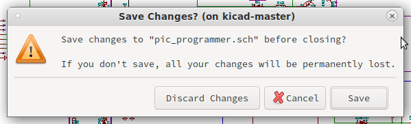 There has been a brief discussion in this bug ( https://bugs.launchpad.net/kicad/+bug/1836498) about removing the bold text from the save dialogs, and instead having all the text as normal font. Part of this is because wxWidgets has an annoying bug with sizing bold text on GTK, and the other part is it does seem to look better without the bold text (see the proposed save dialog attached for how it looks on GTK). I am also thinking that unifying some of the dialogs to use wxRichMessageDialog instead of wxMessageDialog would be useful. For the save changes dialog, the Mac builds already always use wxRichMessageDialog for every dialog, while Linux and Windows use both wxRichMessageDialog and wxMessageDialog depending on the application. The rich message version appears cleaner on GTK (see attached) than the normal message version (which also isn't showing the icon on Linux it seems). I also think it might be good to discuss doing this to the other dialogs to try to unify their look across the board. An example for making this change to the revert dialog is attached. This converts it from the normal message dialog to a rich message dialog. (There are probably many others we could look at as well, but these are just the two I played with currently). I have attached a sample patch that changes these dialogs so people can try it (do not commit this, it is a test only and can be made much cleaner if we actually want to use it). I would like to get feedback from people, and also find out how this looks on Windows (Jeff already says it looks better on Mac). Thoughts? -Ian