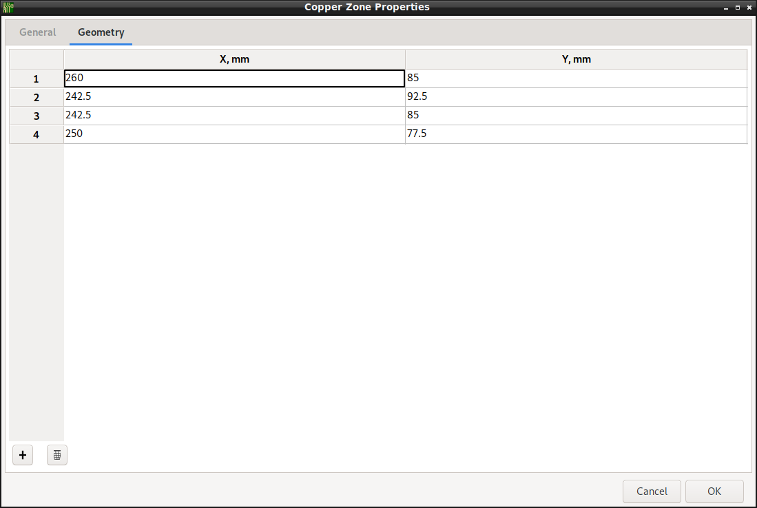 Hi, thanks for answer, I have some strange misbehavior in launchpad. I'm not even sure, that my message will be posted to mailing list. I already contacted their support. Well, if nothing helps, I would go for bug report. So, once again, I will get geometry by SHAPE_POLY_SET, but is it right that all outlines shapes equal in zone? Is it possible to create a hole in zone? I mean, through KiCad interface. Should dialogs give possibility to edit holes coordinates as well? I will attach pictures to this mail On Tue, 10 Sep 2019 at 15:47, Seth Hillbrand <seth@xxxxxxxxxxxxx> wrote: > > On 2019-09-09 08:21, Alexander Shuklin wrote: > > Hi! > > There's one thing I always missed - ability to change polygons > > coordinates. > > I prepared a patch for that. > > First of all there's the linechain editing widget and I used it for > > some pcbnew dialogs. > > But there's few points in which I'm not so sure. > > > > First of all, I added SHAPE_LINE_CHAIN property to ZONE_SETTINGS > > I see, that ZONE_SETTINGS holds geometry in SHAPE_POLY_SET. > > But is it some equal SHAPE_LINE_CHAIN's? Is it ok to hold just > > SHAPE_LINE_CHAIN to understand zone geometry? > > Anyway, that's what i've done: > > > > auto outline = aSource.Outline(); > > if( outline->OutlineCount() ) > > m_shape = outline->COutline( 0 ); > > > > to get geometry > > > > auto outline = aTarget.Outline(); > > for( int i = 0; i < outline->OutlineCount(); ++i ) > > outline->Outline( i ) = m_shape; > > > > to set geometry > > > > That's work, but if that's bad I can switch to use SHAPE_POLY_SET > > > > And basically some of dialogs look a bit weird. It's probably good > > idea to rearrange some, but I would need your advices. > > I tested as I can zone features, and everything looks ok with that > > patch. > > Hi Alexander- > > We cannot assume that the Zone is merely a SHAPE_LINE_CHAIN. Holes in > the zone also live in the SHAPE_POLY_SET and should be addressed by a > point-editing patch. > > Unfortunately, I don't see a patch attached to this e-mail (or the other > one that was attached to CERN Open Days). > > You can also make a merge request on launchpad or create a bug report > for the feature and attach the patch there. > > Best- > Seth > >