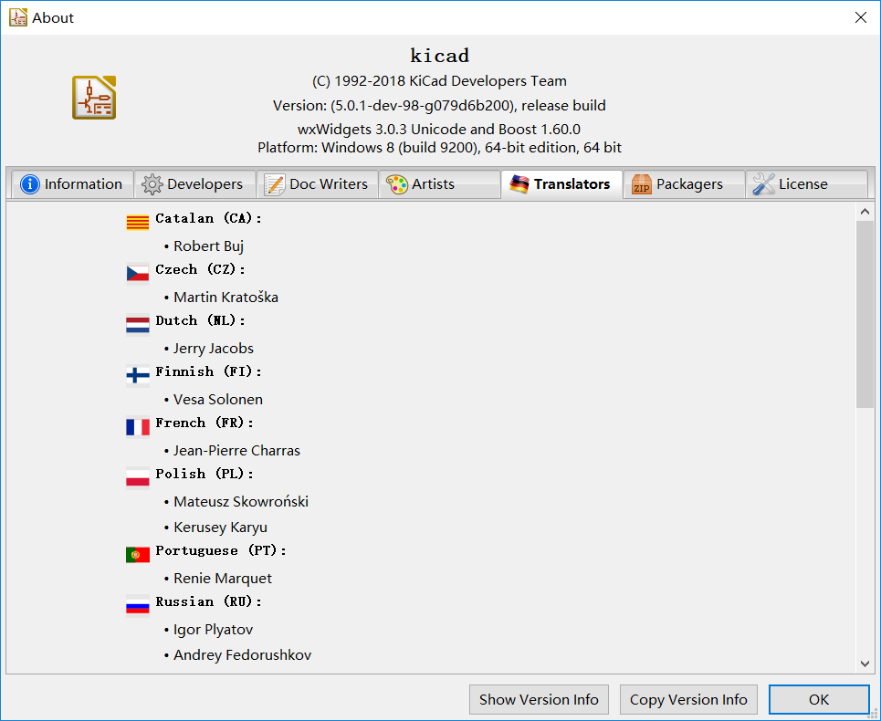 Wayne,In the 5.0 branch and the main branch, <about KiCad > the translator list has no Simplified Chinese. I contributed a simplified Chinese translation of it, I hope to add Simplified Chinese and my name to the translator list, thank you!