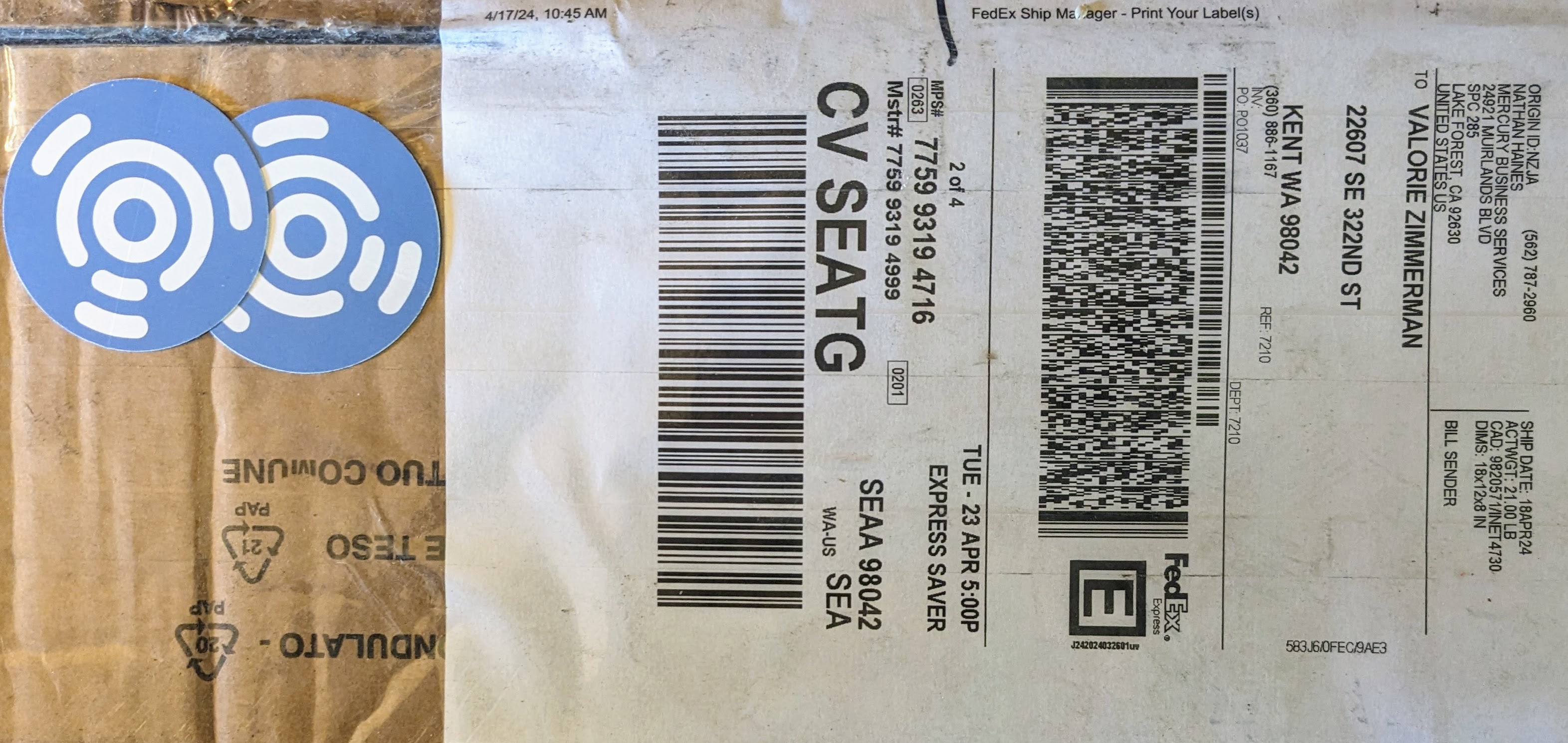 Box 2 of 4 showed up today with the stickers (I think? because the bottom