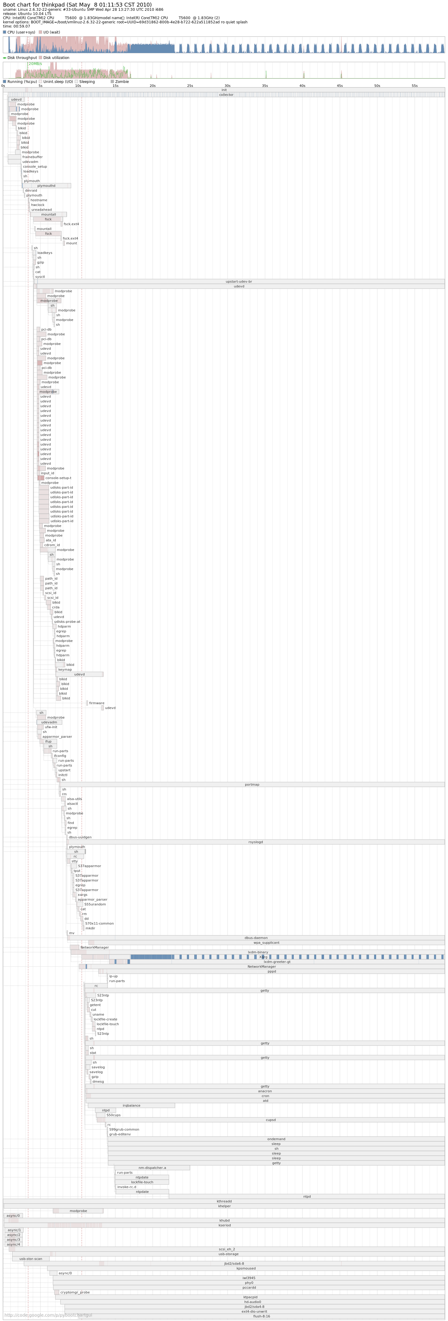 I noted slow loading of lxdm in lubuntu and slower boot compared with ubuntu. To find out the cause, I got a bootchart. However, I didn't saw anything wrong with it. :-( Here is it. Anyone sees what's wrong?