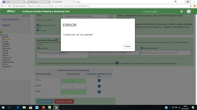 > 1- impossibilité de saisir les données même avec reprise de la saisie.