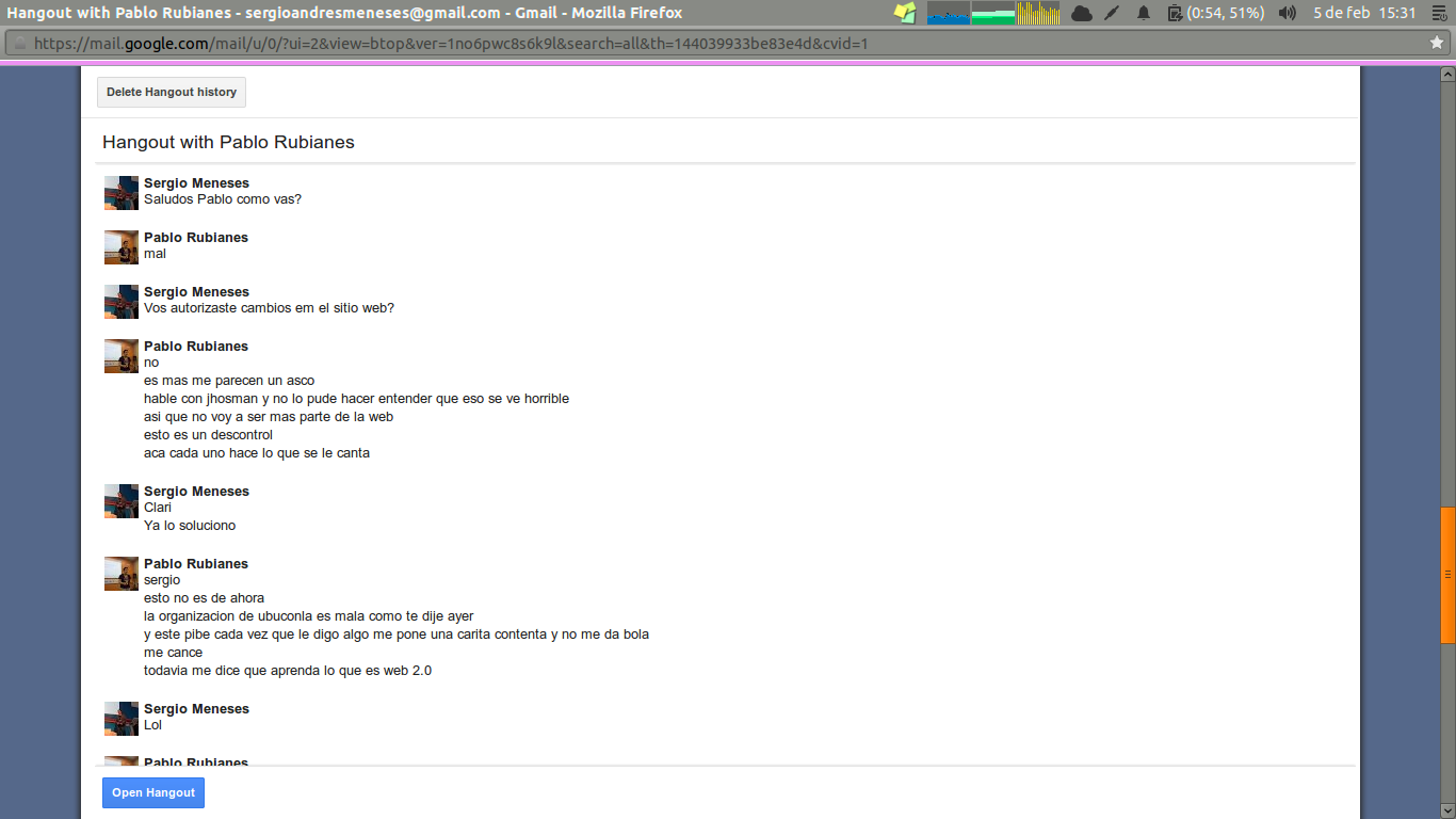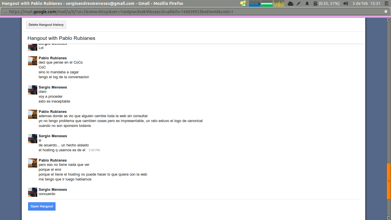 bueno le respondo con las capturas de la charla, uno de los dos esta entonces mintiendo Sergio Meneses Linux User: #478743 Ubuntu User: #24056 2014-02-05 Jhosman Lizarazo - Ubuntu Colombia <jhosman@xxxxxxxxxx>: > Respuesta simple a esto, siguerí algunos cambios sobre el sitio a Pablo > Rubianes y dio visto bueno y procedí a realizar cambios en el sitio > adaptandolo a lo de ahora... el concepto de web 3.0 (ver > http://es.wikipedia.org/wiki/Web_3.0) pero bien en vista de la > inconformidad por parte de Sergio dejaré el sitio así tal cual como se > encuentra en este momento en (www,ubuconla.org/propuesta - el cual no > está terminado y falta mucho por arreglar) y restauraré el sitio original > en www.ubuconla.org > > Y no es andar "metiendo las patas donde se me antoje" solicité permiso a > Pablo y no vio problema en que fuera así... y no es insulto hacer > referencia en lo que se quiere usar en el sitio web del ubucon (Web 2.0) ya > está fuera de linea y se requieren nuevos diseños, estilos y estándares... > > Por lo pronto busquen una persona que se encuentre don disposición a > culminar el sitio a las necesidades que requieran. > > > El 5 de febrero de 2014, 15:09, Sergio Meneses< > sergioandresmeneses@xxxxxxxxx> escribió: > >> Hola Concilio! >> >> >> Hoy me dirijo a ustedes no como un miembro del concilio sino como un >> miembro de esta comunidad, y esta vez si voy a ser puntual en cuanto a mis >> expresiones, y denuncio el comportamiento de Jhosman Lizarazo. >> >> Me canse que ande metiendo las patas donde se le da la gana y nos toque >> correr a tapar los huecos, el dia de hoy se le dio por editar un proyecto >> sin consultar a nadie, en especifico el de la ubuconla, generando >> descontento en un proyecto comunitario ( cambios que se efectuaron si >> avisar a nadie ) sacarlo como personal! >> >> Aparte me miente al decir que PabloRubianes le autorizo los cambios y >> tengo pruebas que no es asi ( http://pastebin.com/jiBQ8VYg ) generando >> desconfianza en nosotros como comunidad y como organizadores!... la verdad >> no se que piensan los demas pero esto es un claro ejemplo de que el >> personaje en cuestion no esta a la altura de la posicion que ocupa! y sobre >> todo disque mandar a Pablo a estudiar Web 2.0... que insulto hombre!!! yo >> no se si se han leido algo llamado COC >> >> No quiero emepzar una caceria de brujas, pero es que ya son demasiadas... >> y la verdad a mi este tipo de situaciones me ponen muy incomodo. >> >> A la espera de una pronta y efectiva respuesta. >> >> >> >> Sergio Meneses >> Linux User: #478743 >> Ubuntu User: #24056 >> >> _______________________________________________ >> Mailing list: https://launchpad.net/~ubuntu-co-concilio >> Post to : ubuntu-co-concilio@xxxxxxxxxxxxxxxxxxx >> Unsubscribe : https://launchpad.net/~ubuntu-co-concilio >> More help : https://help.launchpad.net/ListHelp >> >> > > > -- > Cordialmente. > > > > Jhosman Lizarazo > https://launchpad.net/~jhosman >