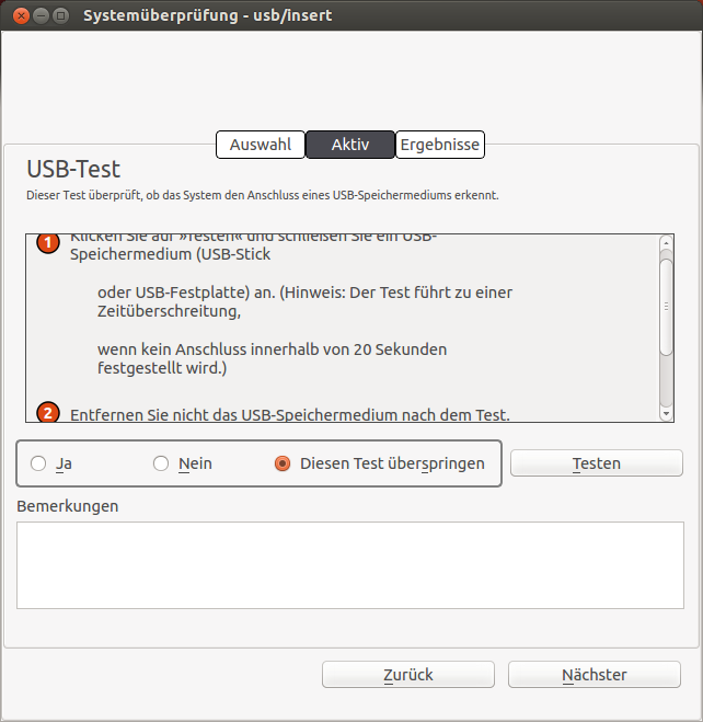 bescheiden aus. Siehe z.B. den Anhang für den USB-Test. Der Eintrag