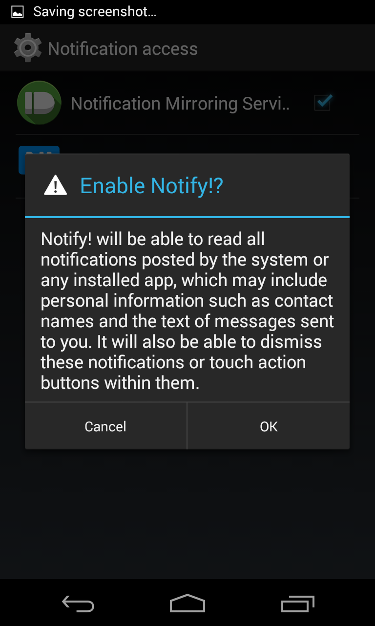 See inline Am 26.06.2014 16:29 schrieb "Benjamin Zeller" <benjamin.zeller@xxxxxxxxxxxxx >: > > Am 26.06.2014 14:36, schrieb Michael Zanetti: > > On Wednesday 25 June 2014 12:47:02 Marc Deslauriers wrote: > > [snip] > >> As I said, I don't want to prevent background services, I want us to do it > >> in a way that most people would find reasonable, and using the principle of > >> least astonishment. I'm pretty sure when people close their flashlight app, > >> they don't expect it to be running in the background and tracking their > >> location. > > That's why I for one (as a user and a developer) would be really happy with > > the option for the user to allow an app to be kept running (as in running, not > > suspended). Sort of like this: > > > > An app indicates that it has features which require to keep running and > > processing data. If the user starts that app for the first time, the system > > asks the user: "App X asks for permission to keep processing data even while > > the display is off. Please note that this might affect your battery lifetime. > > Accept/Decline. (You can change this setting in the system settings at any > > time)". > Great idea, you could do the same with a background service, when its > started > the first time the user is told about it and can always change his > decision in the > settings. > > > > If the user declines, the app will be suspended when unfocused and some > > features might not work. If the user agrees, the app would not be suspended > > and support all the use cases that came up in this thread. However, if the > > user closes the app's window, that would also stop the process in any case. > > That would make it quite clear to the user what's running and what isn't. > Hm we could have the same behaviour if we require the bg process to be in > the same process group and terminate the whole group when closing the app. > That way we get background tasks without the full application running > all the time. > > > > > I'd also be fine if this question only pops up if the user has qualified as > > power user (e.g. a setting to enable this advanced stuff) and just decline it > > automatically for non tech savvy people. > But how should the user know about the not working features if the dialog > does not pop up because he did not select "poweruser" mode? Maybe a settings screen like android has to allow notification access could be a solution. The app could point to this screen and the user would have to make a tick. See attached screenshots. > > > > If the developer needs to do things even when the app is completely closed, > > that's when a set of restrictive, predefined system services like push > > notifications etc should help out. > > > > > > I'm not really concerned about the app being quit by the out of memory killer. > > If we're out of memory we're out of memory, there's not much we can do about. > > Maybe the OOM killer could try to stop non-background enabled apps before > > others and try to be smart in order to minimze the risk of interrupting such a > > background task... > Yep > > > > br, > > Michael > Writing system services for every possible background task is way to much work for the Ubuntu phone developers. Regards Christian