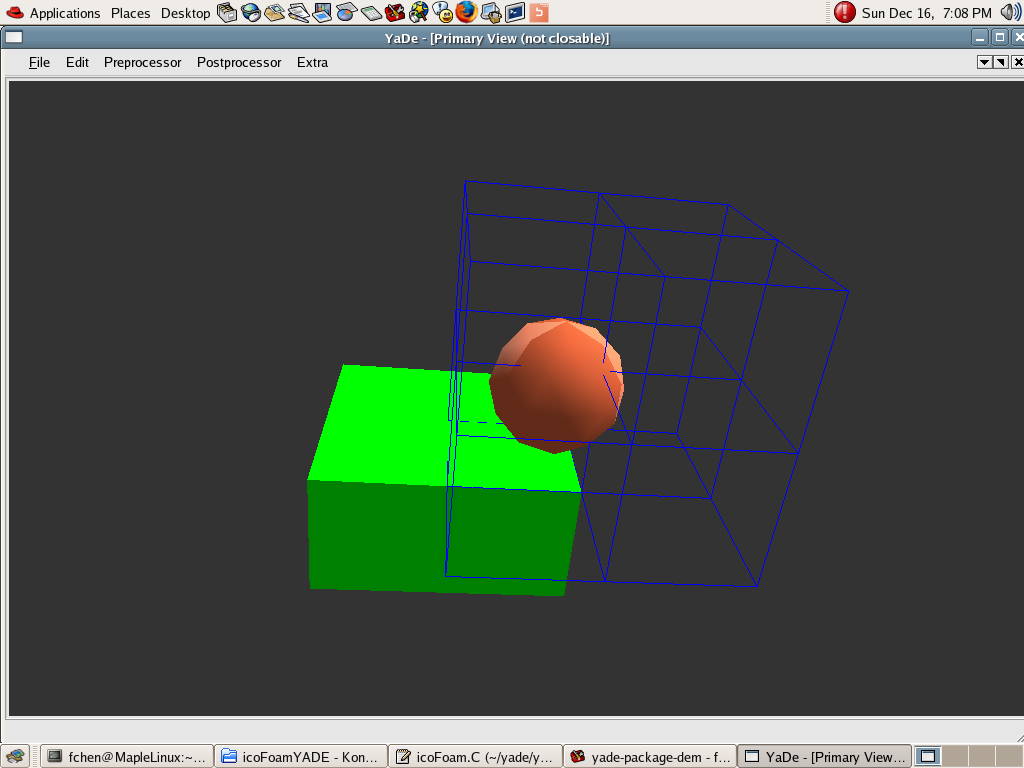 I just want to add a mesh to the "Primary view", only for display purpose, that mesh will not interacting with any particles or walls, as shown in the attached figure, since I don't want the mesh to appear in the contact object list:ncb->volatileInteractions. The attached picure is what I used by adding box in the Preprocessor (similar to SDECSpheresplane::generate()) using rootBody->bodies->insert(cellMesh); however simply create the box and then assign zero young's modulus and poisson's ratio does not seem to be the best solution (it will interact with particles and walls).