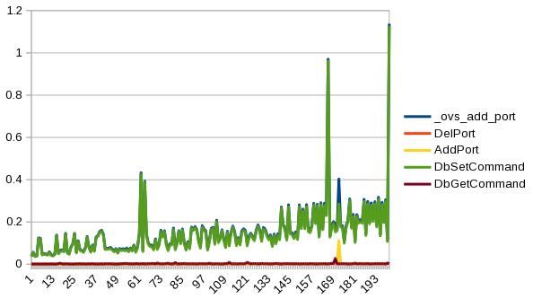 In the above graph, y-axis is time in seconds, and x-axis is pass through _ovs_add_port (two per router add).